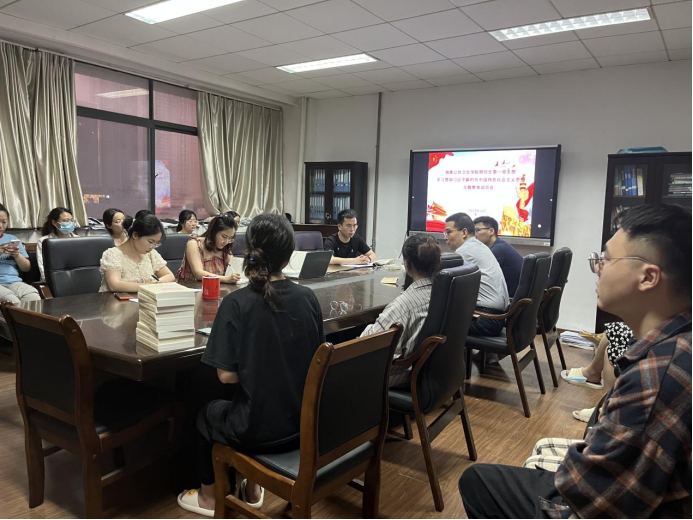 (图为研一支部全体党员在教育动员会上参与讨论)