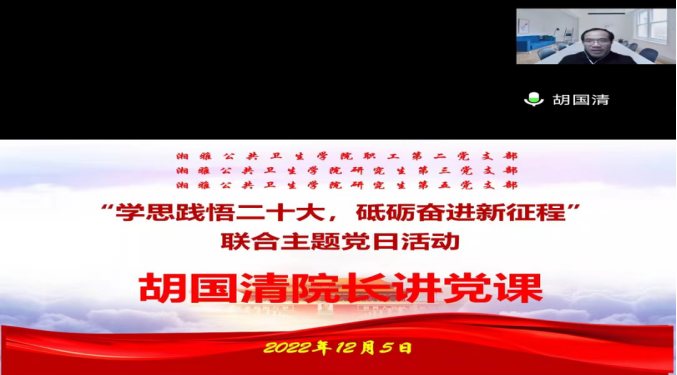 (图为胡国清院长在线为党员同志讲党课)
