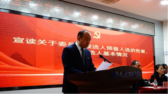校党委组织部副部长张志宏宣读了《关于同意召开中国共产党永利yl23411永利yl23411党员大会的批复》《关于永利yl23411党委换届候选人预备人选的批复》。