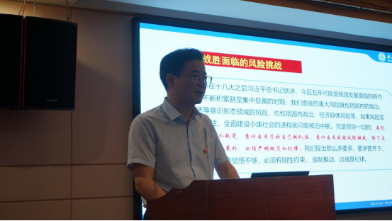 5月31日晚,雷先阳书记结合郴州市相关党纪处分案例等对《中国共产党纪律处分条例》进行了深刻解读。雷书记强调学院全体党员同志需要逐字逐句学习《条例》,做到内化于心、外化于行,要深化严格执纪。开展党纪学习教育,要坚持以习近平新时代中国特色社会主义思想为指导,做到学纪、知纪、明纪、守纪,把遵规守纪刻印在心,内化为言行准则,进一步强化纪律意识、加强自我约束、提高免疫能力,增强政治定力、纪律定力、道德定力、抵腐定力,始终做到忠诚干净担当。他希望通过今年4月份以来系统的党纪理论学习和本次开展的现场研学,进一步严明六大纪律,党员同志们能够奔着问题去、对着问题改,扎实推动党纪学习教育走深走实。