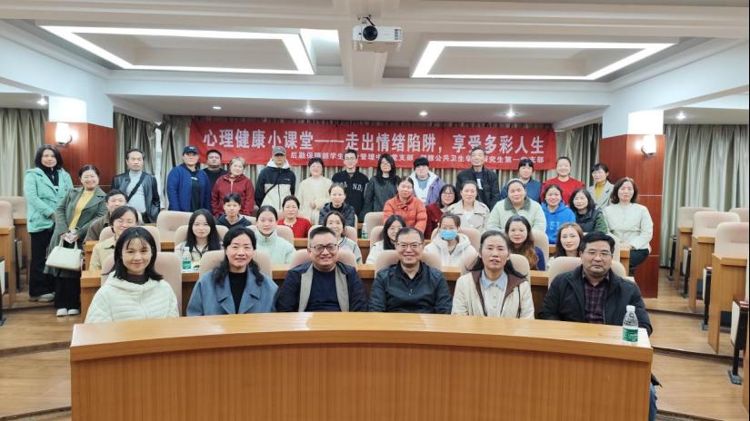 11月22日下午,为深入贯彻党的二十届三中全会精神,进一步发挥“党建引领+心理护航”的积极作用,强化党内关怀,提升党员的心理健康意识与自我调适能力,永利yl23411研究生第一党支部与后勤保障部学生宿舍管理中心党支部于湘雅新校区留学生公寓四楼多媒体教室联合举办“走出情绪陷阱,享受多彩人生”主题党日活动。永利yl23411后勤保障部党委委员、副部长胡壮志,全体党员和部分学生宿舍管理员参加本次活动,活动由学生宿舍管理中心党支部书记黄亮姿主持。