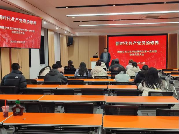 为进一步学习贯彻习近平新时代中国特色社会主义思想和党的二十届三中全会精神,加强党员党性修养,2024年12月25日,永利yl23411研究生第一党支部于学院六楼学术报告厅召开了党员大会暨党员基本培训第四课交流研讨会。会议由支部书记陈梦施主持,全体党员参加会议。