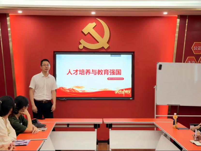 从2018年全国教育大会“培养什么人、怎样培养人、为谁培养人”的根本问题到党的二十大报告,再到《教育强国建设规划纲要(2024—2035年)》,开天瀚重点解析了“教育、科技、人才是全面建设社会主义现代化国家的基础性、战略性支撑”的定位,鼓励党员以“教育强国、科技强国、人才强国”目标为指引,在时代发展中寻找创新突破口,不断拓展知识面,主动涉猎交叉学科与新兴技术。