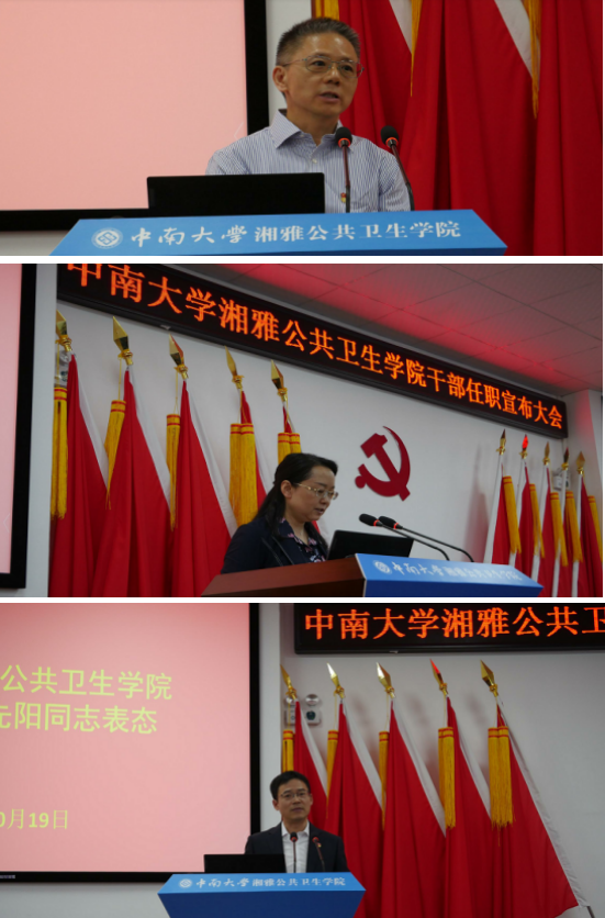 会上,蒋建湘同志代表学校党委和行政,对雷先阳同志的正式履新表示祝贺。他指出,在新的历史起点上,作为高校教育工作者,作为党员干部,我们要从习近平总书记的报告中坚守初心、躬耕自省、砥砺奋进,加强理论学习,提高政治站位,牢牢把握方向。团结一致,形成合力,抓住高水平公共卫生学院建设的良好契机,扎实基础,努力把学院推向新阶段。联系实际,主动服务于健康中国的国家战略,实干担当,努力为人民作贡献。完善机制,防微杜渐,营造风清气正的氛围。在推动高质量发展、加快建设中国特色世界一流大学的道路上不断取得新的更好的成绩!