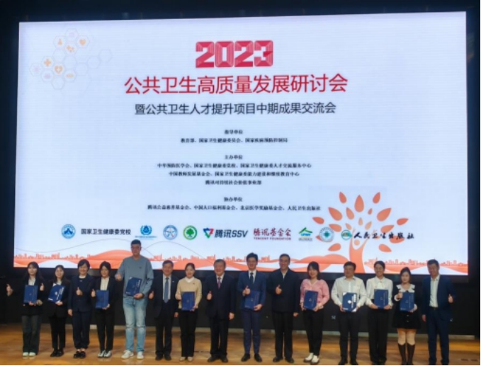 据悉,为支持国家高层次应用型公共卫生人才培养,助力构建强大的公共卫生体系,培养国家急需的高层次应用型公共卫生博士和“医学+MPH”双学位研究生,激励更多优秀学生立志从事公共卫生领域相关工作,增强其在职业发展上的荣誉感和积极性,2021年11月,在教育部学位管理与研究生教育司指导下,腾讯公益基金会捐资2500万元,与中国教师发展基金会共同设立了高层次应用型公共卫生人才培养项目——腾讯奖学金(以下简称“公卫奖学金”)。公卫奖学金面向教育部、国家卫生健康委员会联合启动的高层次应用型公共卫生人才培养创新项目立项的11家单位开展。2023年7月18日,永利yl23411李思文、胡召、伍翩、张成成四位博士研究生和岳婷婷、宋欣俐、张贝思、刘紫荆、刘思越五名硕士研究生获得首届腾讯奖学金(“公卫奖学金”)。永利yl23411作为首届腾讯奖学金获奖单位应邀参加会议。