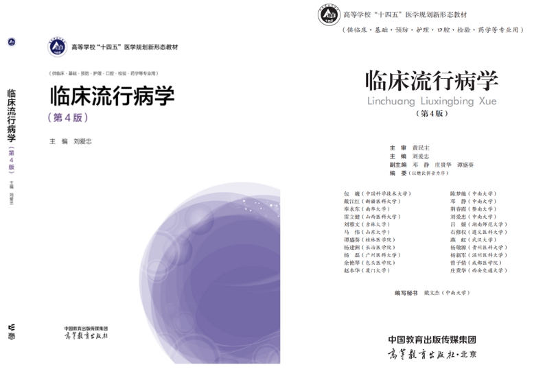 由永利yl23411流行病学教研室牵头编写,黄民主教授主审,刘爱忠教授主编、邓静副教授副主编、来自全国20所高校的22位专家教授参编的《临床流行病学》(第4版)于近期由高等教育出版社正式出版。该书是高等学校“十四五”医学规划新形态教材,适用于各医学专业本科生、研究生及临床医生、医学科研人员、卫生管理人员等。