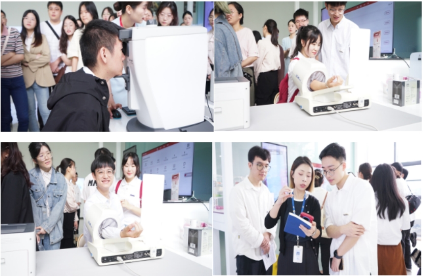 在颁奖典礼开始之前,永利yl23411优秀校友李少波董事长对母校领导及学弟学妹们的到来表示热烈欢迎,分享了自己在湘雅求学及毕业离校后的创业历程,鼓励学弟学妹们学好专业知识,培养创新思维,把握新发展阶段,贯彻新发展理念,构建新发展格局,在规划职业发展时,将个人理想追求融入党和国家事业之中。随后,与会领导及人员参观了三诺生物传感股份有限公司企业大厅、三诺健康门诊,深入了解了三诺的发展历程、企业文化及产品,并现场体验了三诺爱心血糖监测、无创血糖实时跟进等先进服务与技术。