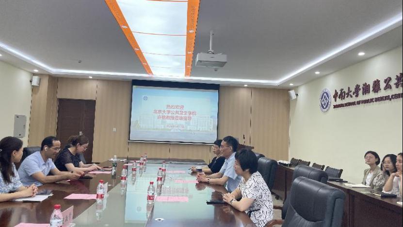 讲座之后的交流讨论会上,肖芳副院长向许铭教授介绍了学院近些年在学科建设及国际合作方面开展的有关工作和取得的成绩;胡国清院长就国际交流、人才培养、国际化发展等议题,与许铭教授进行了交流和探讨。许铭教授分享了北京大学公共卫生学院相关领域的教学与实践经验,为我院未来开展全球健康工作以及高水平公共卫生学院建设提供了宝贵的经验。永利yl23411全球卫生中心主任罗丹教授、湘雅三医院护理部严谨主任、湘雅医院临床护理学教研室李丽副主任以及学院参与全球健康工作的相关教师,就我校全球健康学科的建设与发展,以及如何进一步推进与国内外高水平院校在全球健康领域的科研和实践工作,向许教授虚心求教并进行了深入讨论。