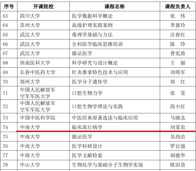 近日,全国医学专业学位研究生教育指导委员会发布了首批全国医学专业学位研究生在线示范课程名单,永利yl23411永利yl23411刘爱忠教授负责的《临床流行病学》慕课获评首批全国医学专业学位研究生在线示范课程。