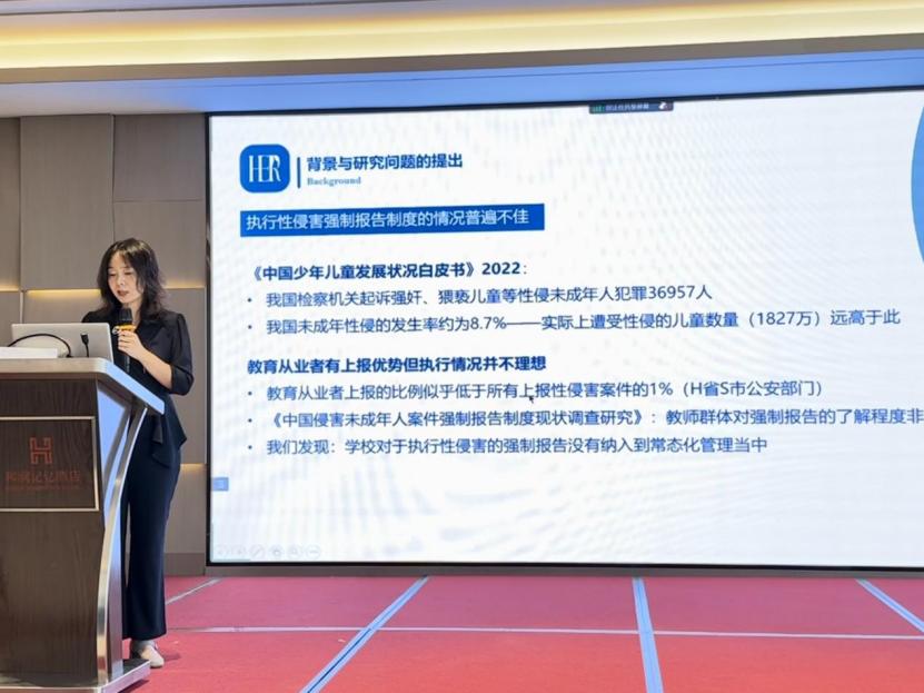 我院儿少系师生的三个报告如同三块拼图,构成了一个相对完整的“科研故事”,将基于学校的未成年人性侵预防这一敏感而重要的话题多角度呈现在大会上,引发了参会者的广泛的讨论。据悉,这是HER Team在邵阳地区教育系统内开展的最新课题,团队多位成员在教育局和多所中小学校进行了访谈、调查与快速人类学研究后获得的初步结果,于2023年获得了湖南省教育厅的重点立项与资助。接下来该团队将在此基础上开展基于学校的干预性研究,以期有效预防校园性侵害的发生,为未成年人撑起有效保护伞。