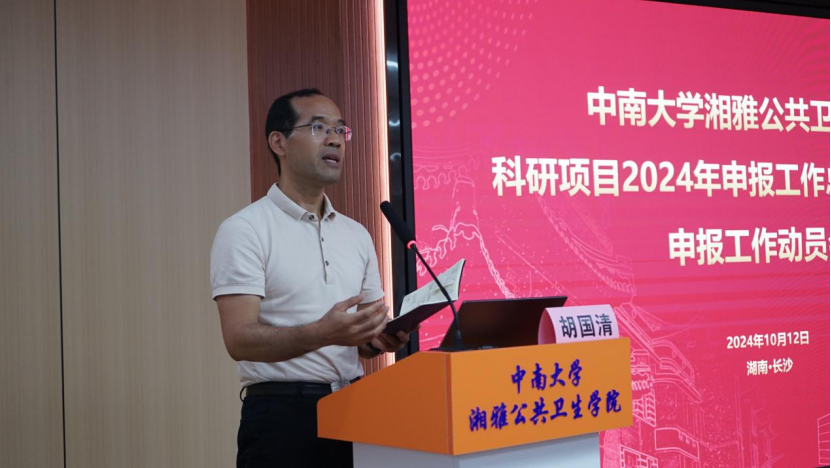 胡国清院长在总结发言中强调,与会教师务必提高对国家级等高级别科研项目申报工作的认识,高度重视,全力做好2025年度国家自然科学基金项目的申报工作,提前谋划、积极申报、认真打磨,为学院学科建设和高质量科研成果的产出做出湘雅公卫人应有的贡献。