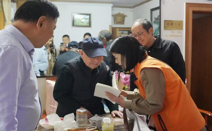 活动伊始,夏志平老师介绍了此次活动相关信息,并深情地表示李力夫老人是功臣,是学校、学院的宝贵财富,大家一直牵挂着老同志的健康和生活。随后,杜方冬副处长为老人送上礼物,并详细询问老人生活现状和困难,还留下了饱含关怀的慰问金等。接着,泰康之家集团送上精心准备的礼物,包括实用的拐杖、防滑袜等日用品,还有中粮集团提供的营养丰富的饼干、面条等食品,以及贴心的防诈骗提醒资料、永利yl23411离退休处提供的日常联系电话单等。
