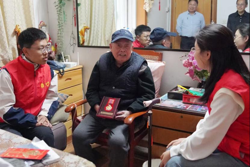 随后,学生志愿者们围坐在老人旁边,与老人亲切交流、谈心。老人回忆起19岁应征参军参加抗美援朝战争的经历,尤其提到与美军作战的场景,令人动容。志愿者们还为老人唱响歌曲《我爱你中国》。同学们感慨地说,第一次在现实中见到抗美援朝战士,内心受到极大触动,他们深知新中国的建立离不开像李力夫老人这样舍生忘死、英勇无畏的战士,如今历史的接力棒已传到他们手中,他们将传承抗美援朝精神,不惧艰难困苦,以乐观积极的态度为实现中华民族伟大复兴的中国梦而拼搏。