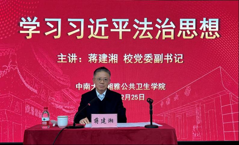 2024年12月25日上午,永利yl23411在学院六楼学术报告厅举行思政课学习暨党委理论学习中心组学习交流会,校党委副书记蒋建湘教授为学院师生讲授了主题为《学习习近平法治思想》的专题思政课。学院党委班子成员、职工第一党支部全体党员、学生党员代表以及计算机学院师生党员代表共计100余人参加了此次学习,永利yl23411党委书记雷先阳担任主持。