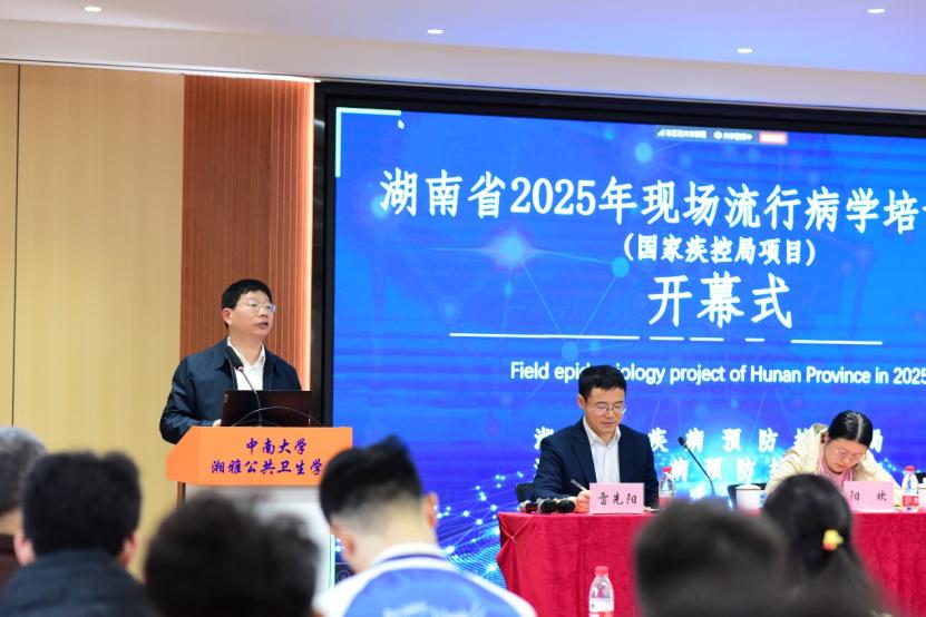 为深入贯彻落实“健康中国2030”战略部署,进一步加强全省流行病学调查人才队伍建设,全面提升突发公共卫生事件应急处置能力,锻造一支高素质、专业化的流调队伍,湖南省2025年现场流行病学培训项目(国家疾控局项目)于3月25日在永利yl23411永利yl23411正式拉开帷幕。湖南省疾控局传防处副处长阳欢、湖南省疾控中心党委书记李孝君、永利yl23411党委书记雷先阳等领导出席开幕式。开幕式由永利yl23411副院长李杏莉主持,来自全省部分市州、县区疾控中心、医疗机构以及长沙海关系统的66名业务骨干参加。