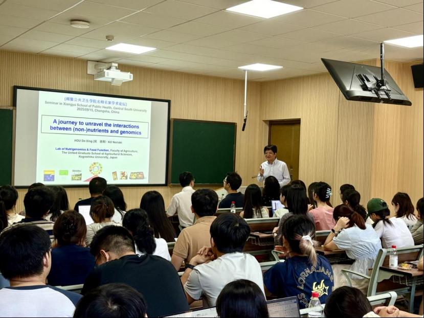 2025年9月15日,永利yl23411名师名家学术论坛在学院B114教室顺利举行。本次论坛主题为“A journey to unravel the interactions between (non-) nutrients and genomics”,特邀日本国立鹿儿岛大学终身荣誉教授、日本鹿儿岛国际大学讲座教授侯德兴担任主讲嘉宾,永利yl23411副院长开天瀚教授主持活动。本次论坛由永利yl23411国际合作与交流处主办,永利yl23411承办,营养与食品卫生学系全体教师及学院近百名研究生参与。
