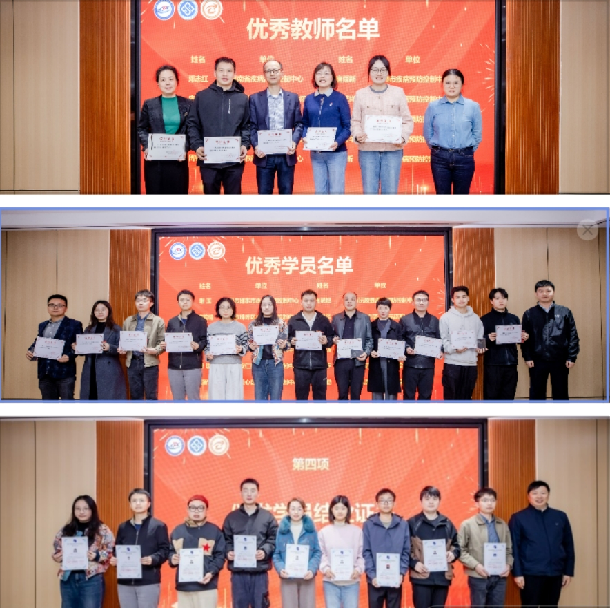 朱敬宇现场宣读了《关于通报湖南省2025年现场流行病学培训项目优秀教师和优秀学员的函》,对在项目实施中表现优异的理论授课教师、现场导师、责任导师、以及参培学员予以通报表扬。优秀教师代表、衡阳市疾控中心周亚丽以“过来人、引路人、传承者”三重身份,分享了从学员到带教老师的成长历程;优秀学员代表、衡阳市珠晖区疾控中心樊若晴则结合自身经历,分享了从“理论困惑”到“实战突破”的转变。
