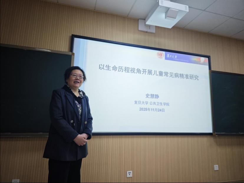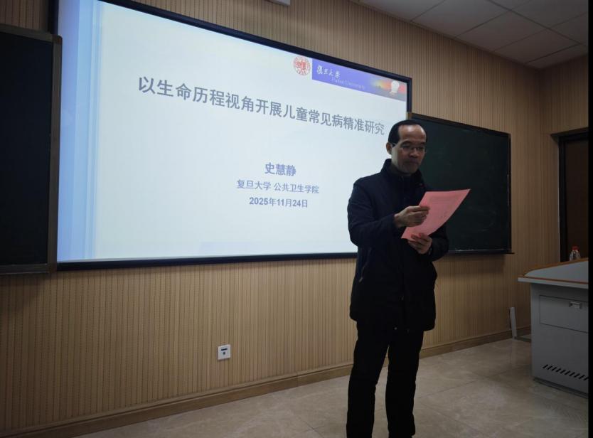 2025年11月24日,永利yl23411永利yl23411举办名师名家学术论坛,本次论坛聚焦儿童青少年健康领域,旨在通过前沿学术分享推动儿童青少年常见病防控的研究创新,助力构建系统完善的儿童常见病研究学科体系。复旦大学公共卫生学院史慧静教授受邀主讲,永利yl23411永利yl23411院长胡国清、永利yl23411儿少卫生与妇幼保健学系龚雯洁教授、刘小群副教授、彭松绪副教授、吴明洋讲师及学院研究生代表参加讲座,论坛由胡国清教授主持。
