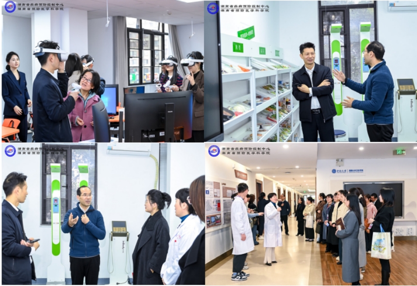 2025年12月19日下午,湖南省公共卫生复合型人才培养项目专家委员会工作会议暨科研管理培训班的参会人员参观了永利yl23411湘雅公共卫生学院的VR虚拟仿真实验室和大仪平台实验室,并围绕教学、科研、人才培养等方面展开了座谈。由湖南省疾控局副局长罗志强带队,湖南省卫健系统各市州的领导、骨干以及学员40余人参加了此次活动。永利yl23411院长胡国清、副院长李杏莉等接待了参观人员。
