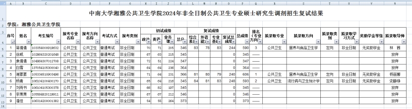 根据永利yl234112024年硕士研究生招生复试录取工作方案,以及我院2024年非全日制公共卫生硕士(MPH)研究生招生调剂复试录取工作方案,蒋倩倩等9名考生获得调剂复试资格。经学院专家组复试、领导小组审核,谢蒙蒙等3名考生获得非全日制公共卫生专业硕士拟录取资格,现公示如下。