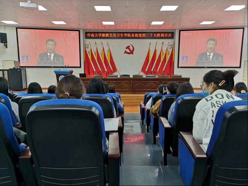 (图为2018级同学集体观看中国共产党第二十次全国代表大会开幕会现场)