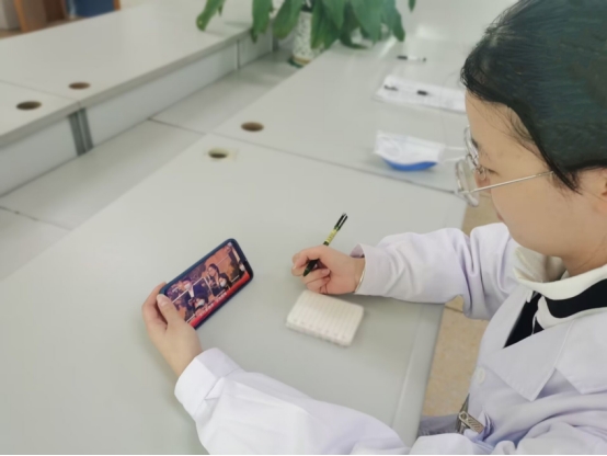 (图为预防T1901班匡倚莹同学观看照片)