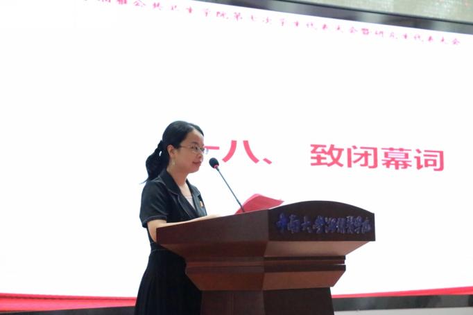 大会最后,由永利yl23411分团委副书记宁佩珊老师致闭幕词。她在发言中,向关心大会召开并莅临本次大会的领导、老师以及为大会服务的所有工作人员致以了最诚挚的谢意,同时对我院团委、学生会和研究生会工作予以充分肯定,并发出“青年兴则国兴,青年强则国强,时代召唤青年,青年创造未来。”有力呼唤,她希望公卫青年既能为自己的青春和梦想努力奋斗,也能为实现中华民族伟大复兴的光荣事业添砖加瓦,极大地鼓舞了我院做好共青团和学生工作的信心和决心。