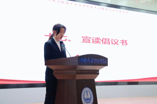 大会进入第十七项,新任学生会主席团代表张睿兮宣读了《永利yl23411湘雅公共卫生学院第七次学生代表大会暨研究生代表大会倡议书》。