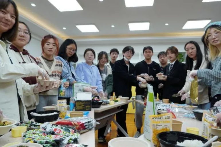 在干货满满的讲解之后,便是同学们翘首以盼的饭团制作环节。在工作人员的带领下,每个同学都乐在其中,制作着属于自己的独一无二的饭团。空气中饭团的香味和同学们的欢声笑语交织在一起,营造出一种轻松和欢乐的氛围。