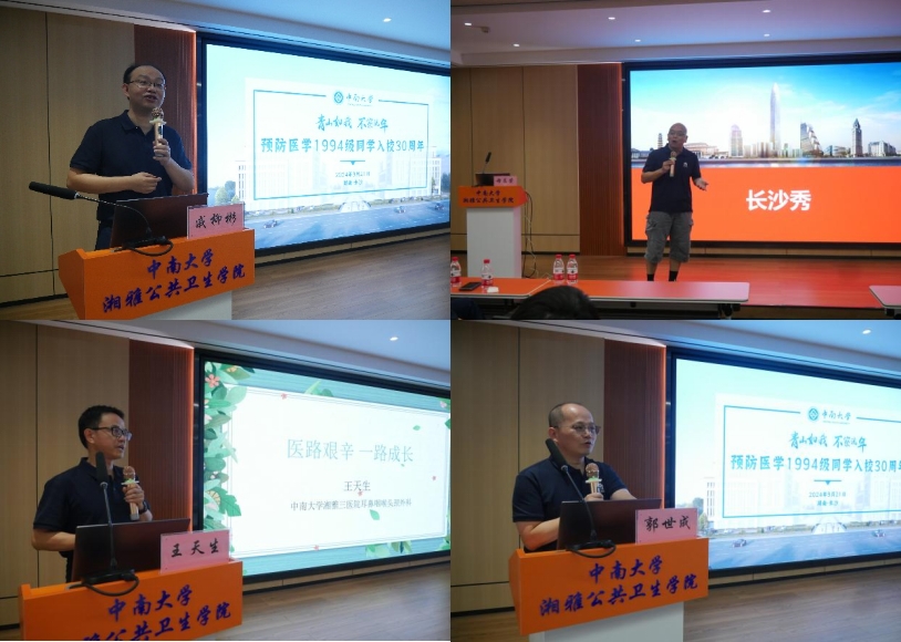 随后,国家药监局戚柳彬、江西省疾控中心郭世成、湘雅三医院王天生、平安保险公司母昌荣等四位94级校友代表,向现场80余名在读本科生、研究生分享了个人的职业发展经历,为在读学弟学妹们的职业生涯规划提供了宝贵指导和建议。